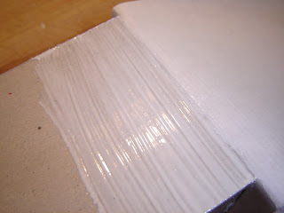 Immer erst ein kleines Stück der Box einleimen und - dann das Papier aufbringen. Oben etwas mehr Überstand als unten lassen, um dann